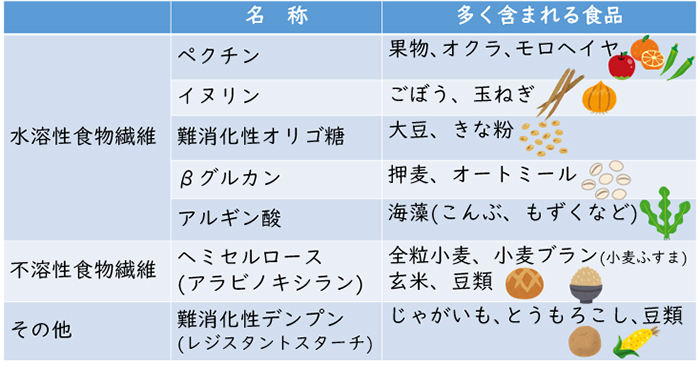 食物繊維には、細い糸のようなスジのある「不溶性食物繊維」と、水に溶けてネバネバ、サラサラした「水溶性食物繊維」の2種類があります。不溶性食物繊維は便のカサを増やし、水溶性食物繊維は便を柔らかくすることで便通を改善する効果があります。そのため、食物繊維は不溶性、水溶性の両方をバランスよく摂取することが大切です。