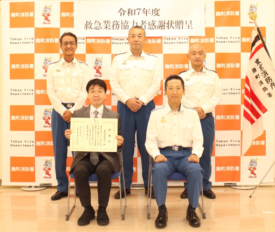東京逓信病院が「救急業務の充実発展に多大な貢献をした」と評価をいただき、9月9日の「救急の日」にちなんで東京消防庁麹町消防署長から感謝状を授与されました。